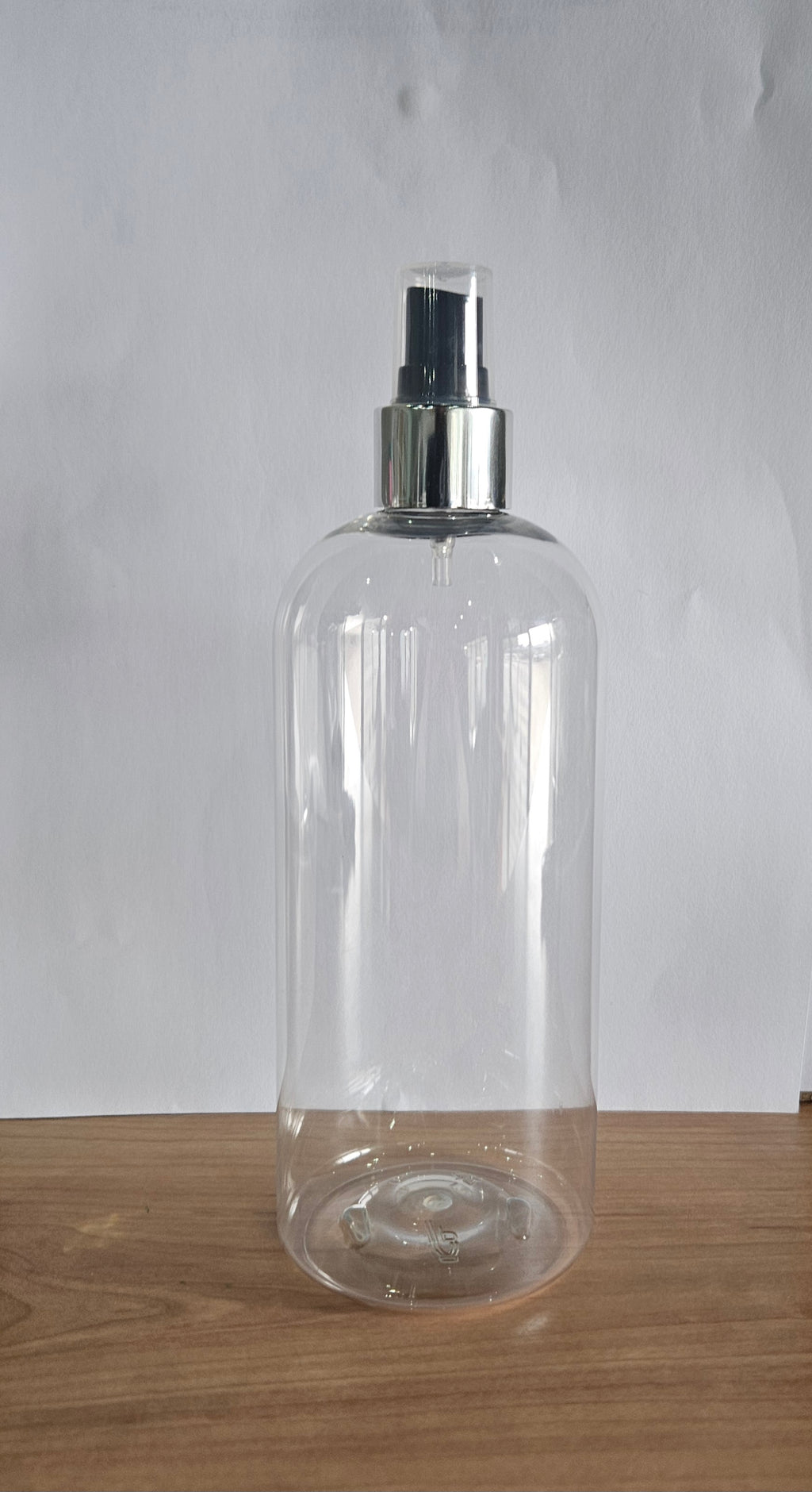 500ml Pet Squat Bottle With silver black mist spray 24mm neck size